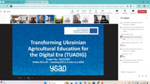 06 лютого 2026 року відбулася стартова онлайн-зустріч європейських та українських партнерів міжнародного проєкту «Трансформація української аграрної освіти для цифрової ери (Transforming Ukrainian Agricultural Education for the Digital Era)» № 101241997 — TUADIG, який реалізується в межах програми Erasmus+.